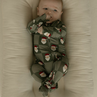 Bamboo Two Piece Pajamas - Santa Checkerboard