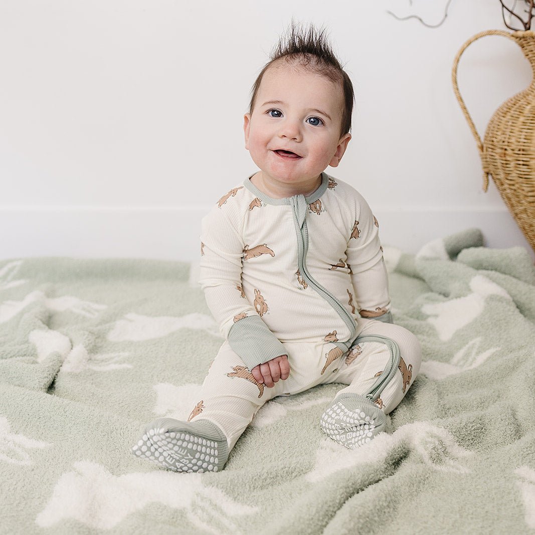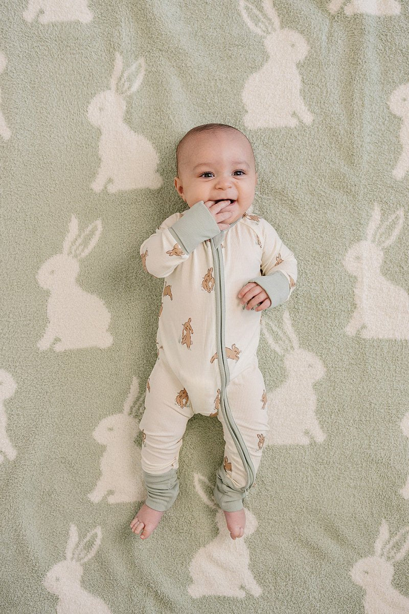 Our Bunny Plush Blankets are made for cuddles at every age! Available in lovey, baby, and adult sizes, these ultra-soft plush blankets feature an adorable light green bunny print that’s the perfect blend of neutral and timeless. Perfect for naps, bedtime, stroller rides, or snuggling on the couch, they’re cozy, comforting, and gentle on skin. From little ones to grown-ups, this is the blanket everyone will want to cuddle up with.