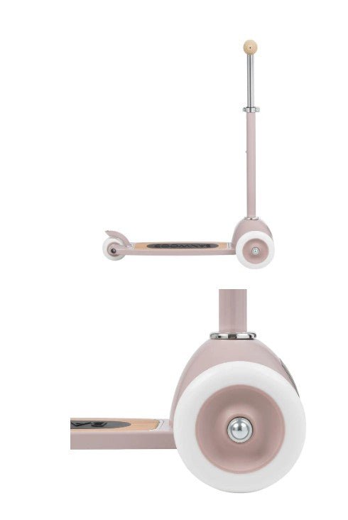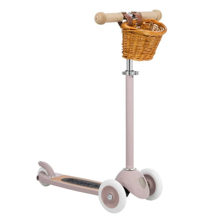 The Banwood three-wheel pink classic scooter is developed in line with Banwood values, focusing on timeless design, high quality, and safety. Suitable for children from 3 years up to a maximum of 110 lbs. The removable wicker basket is the perfect accessory for your little ones' toys.