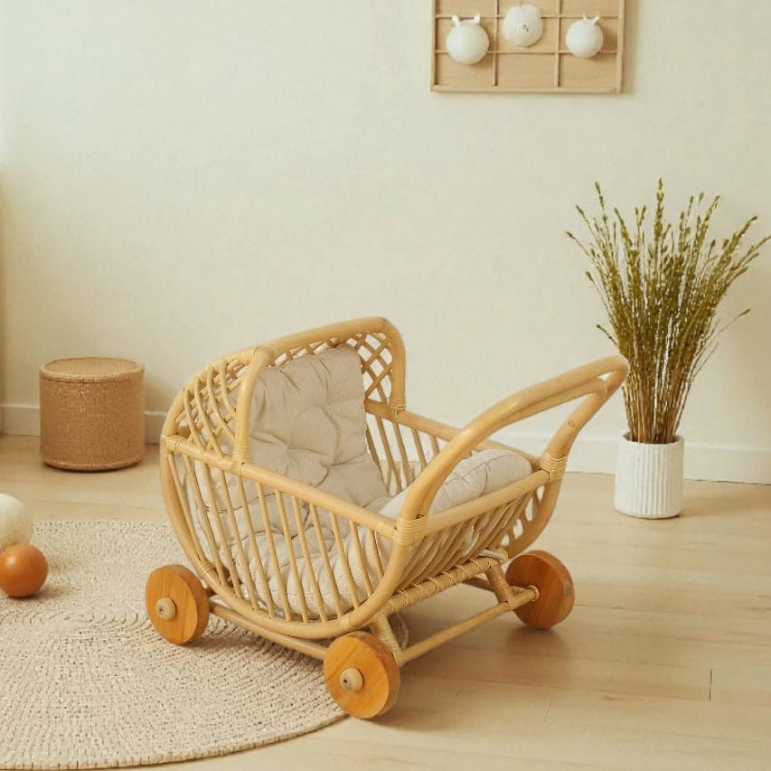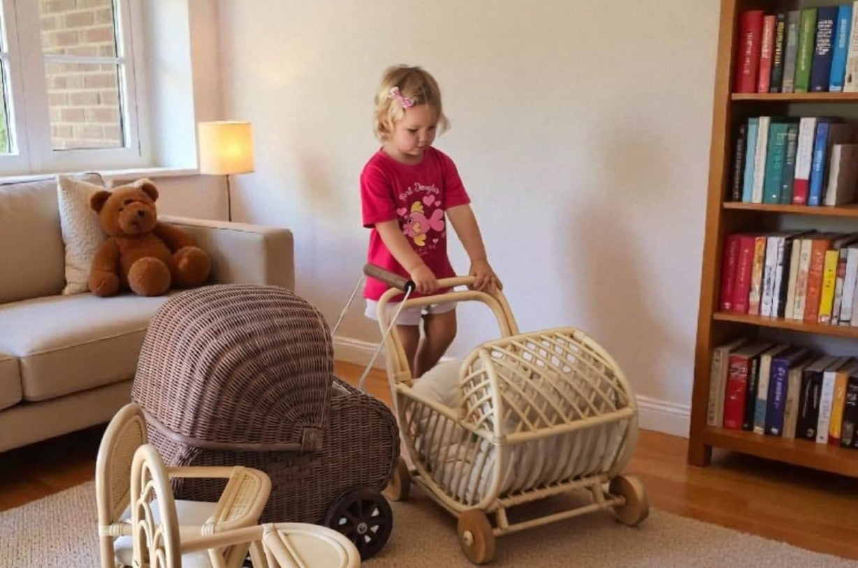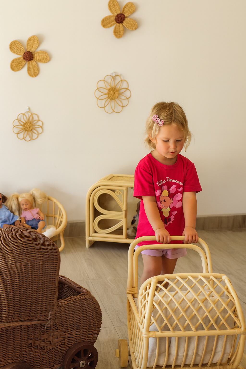 Bring timeless charm and imaginative play into your child’s world with our Lullaby Rattan Doll Buggy. Lovingly handcrafted from natural rattan, this beautiful stroller is the perfect piece for little ones to tuck in their favorite dolls or stuffed friends.