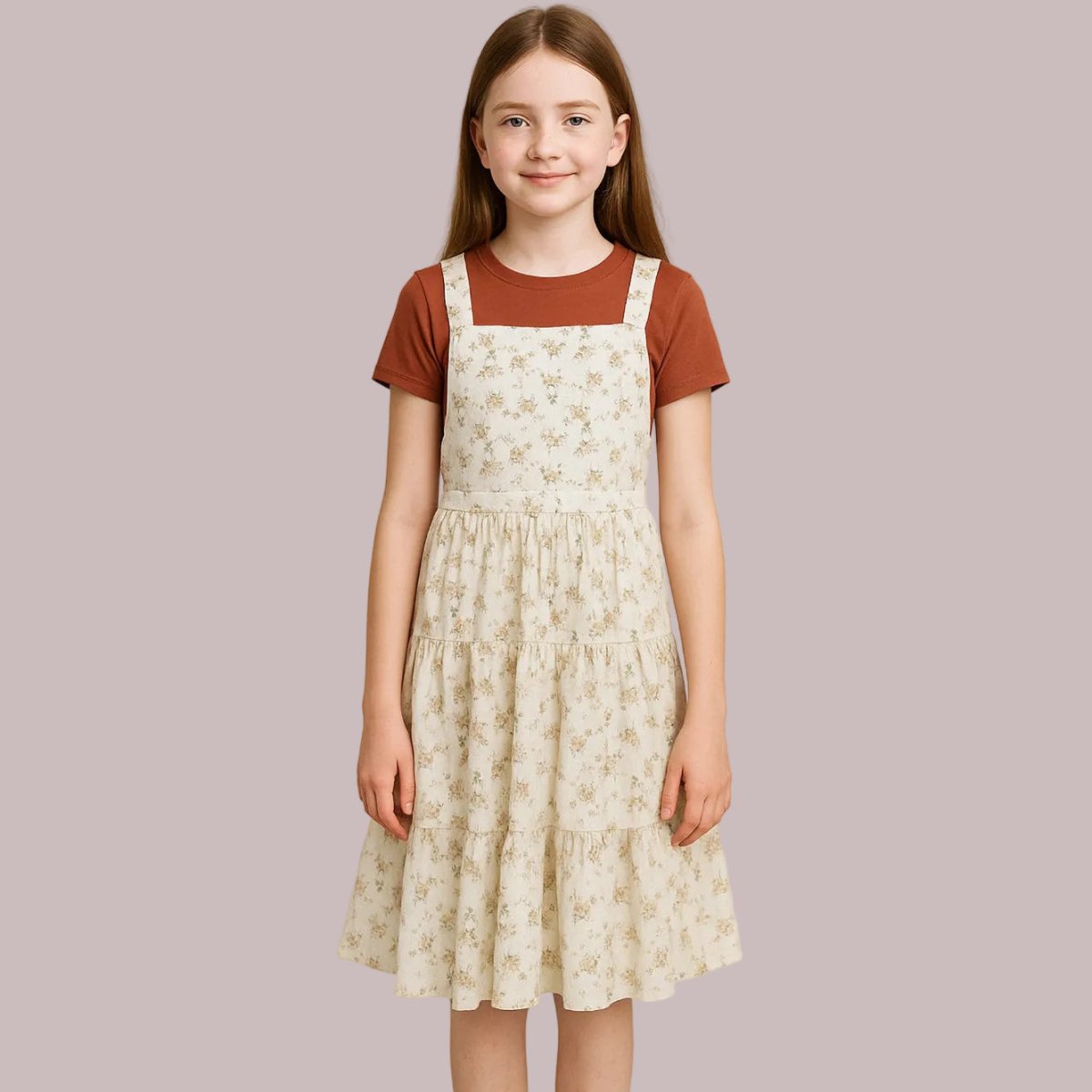 Introducing the Shay Overall Dress in Ivory Floral, where playful style meets everyday comfort! This charming kids' dress combines a delicate floral print with a subtle corduroy texture that feels as good as it looks. Crafted from soft 100% polyester with a fully-lined bodice, it's designed to keep your little one cozy while turning heads. Perfect for playdates, family gatherings, or just being adorably dressed for the day ahead.
