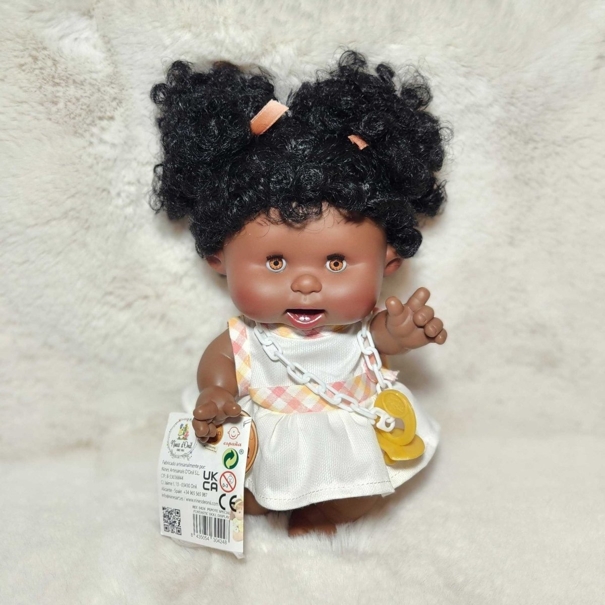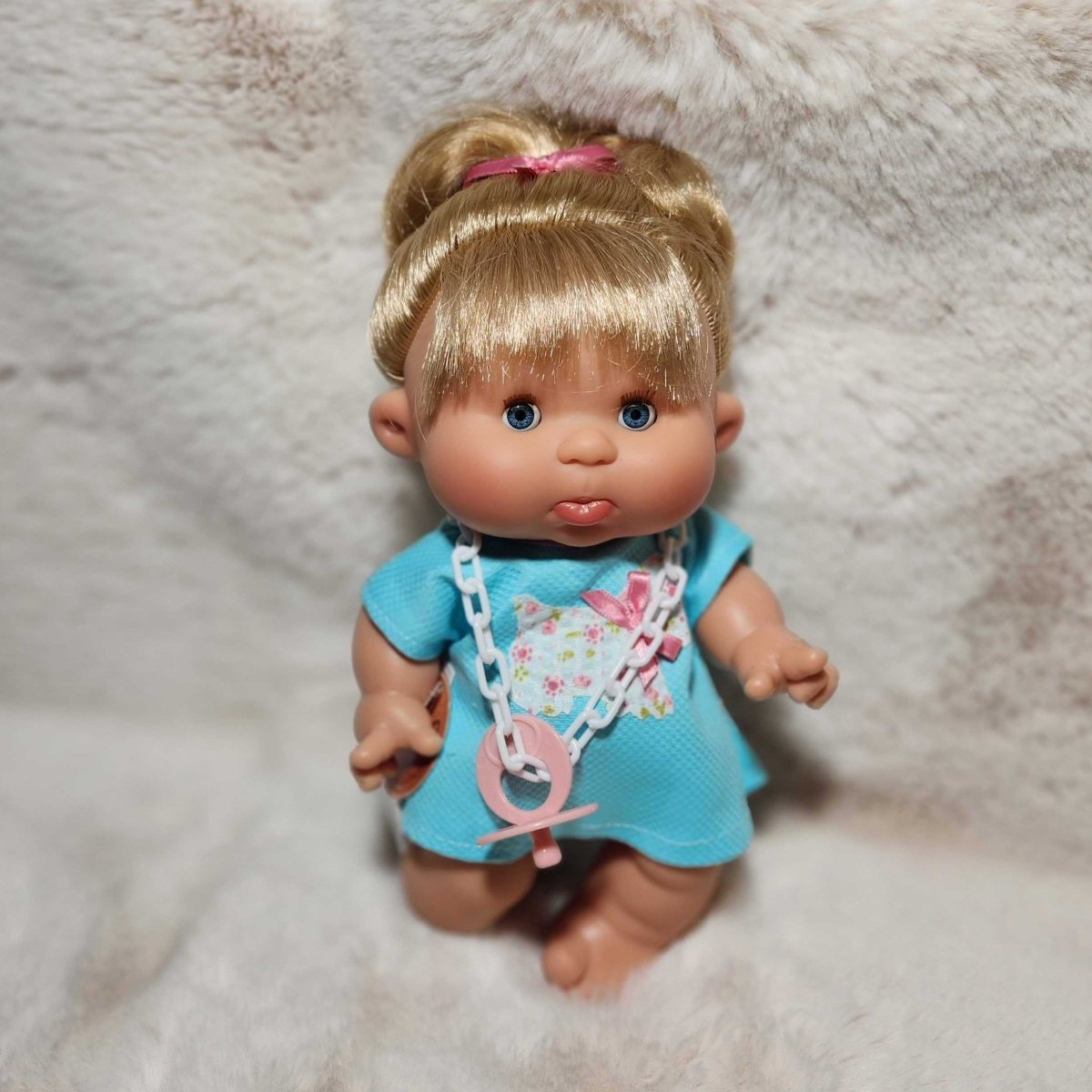 Meet the Pepotes Funtastic an adorable tiny baby doll perfect for tiny hands with eyes that open and close. Nines D'Onil's Pepotes mini dolls are 10 inches tall and vanilla-scented. The dolls have a pacifier and are available in different outfits. The dolls are made from a hard body of soft vinyl, so they can go anywhere, even while bathing. They are the perfect first doll for toddlers.