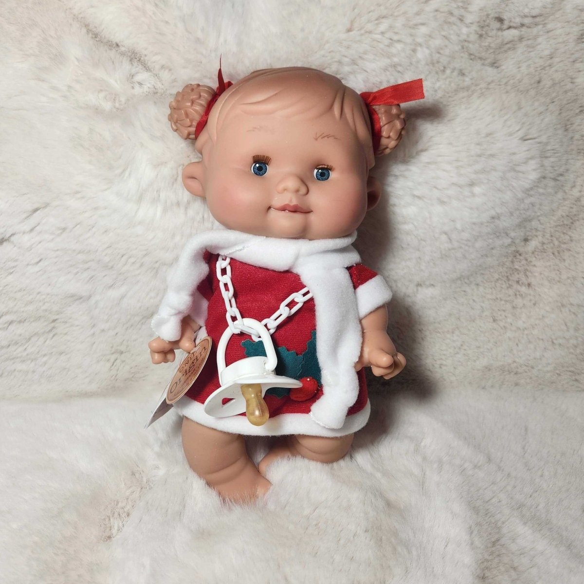 Only here for xmas, our little Pepotes are dressed to impress. Nines D'Onil's Pepotes Original mini dolls are 10 inches tall and vanilla-scented with eyes that open and close.. The dolls have a pacifier and are available in different outfits. The dolls are made from a hard body of soft vinyl, so they can go anywhere, even while bathing. They are the perfect first doll for toddlers.