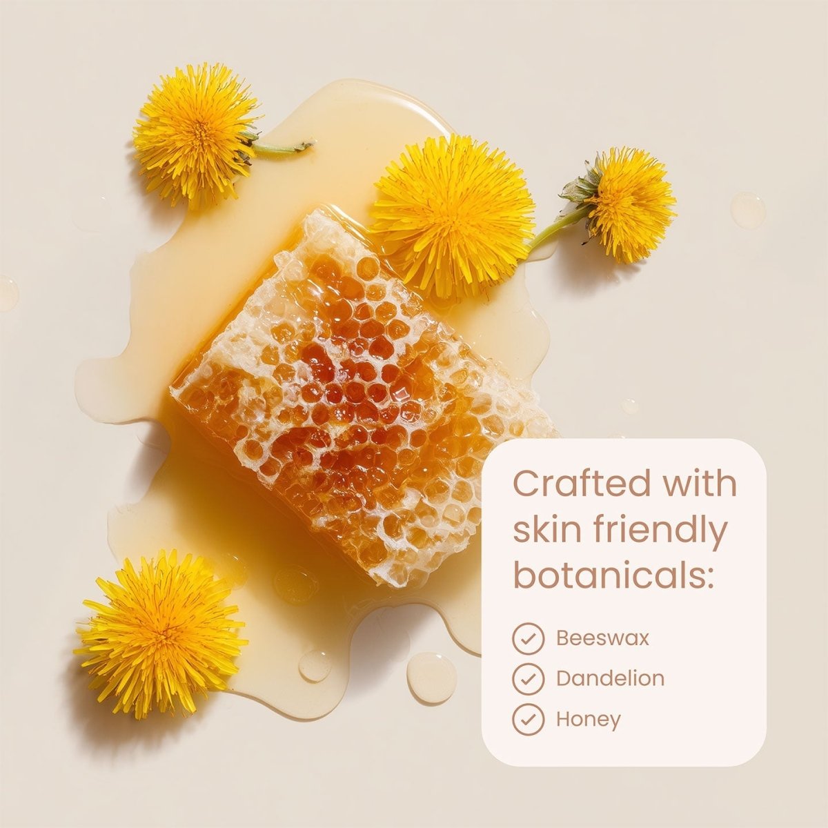 (corn) starch, beeswax white, ceramide AP, ceramide NP, ceramide EOP, honey, water, alpha-glucan oligosaccharide, lactobacillus ferment, taraxacum officinale (dandelion) leaf extract, inulin, phytosphingosine, cetyl alcohol, butylene glycol, carbomer, xanthan gum, ethylhexyglycerin, 1,2-hexanediol, sodium lauroyl lactylate, cholesterol