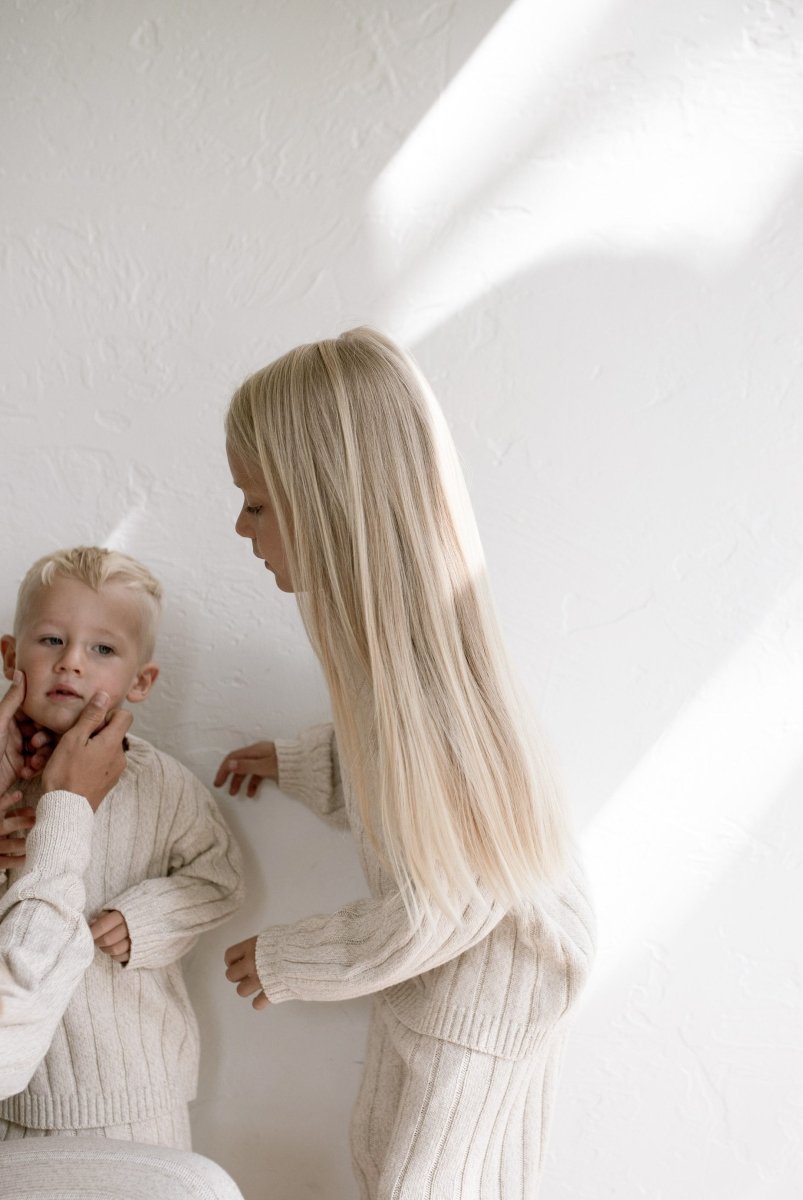The wide ribbed sweater ‘Oatmeal’ was made with a timeless look and a luxury fit. Wide arms and fitted cuffs give it a simple yet elegant look that goes well with everything. Pair with their favorite bottoms or the matching wide ribbed pants for the full knit set. Simplicity meets durability with this minimalistic ribbed sweater.