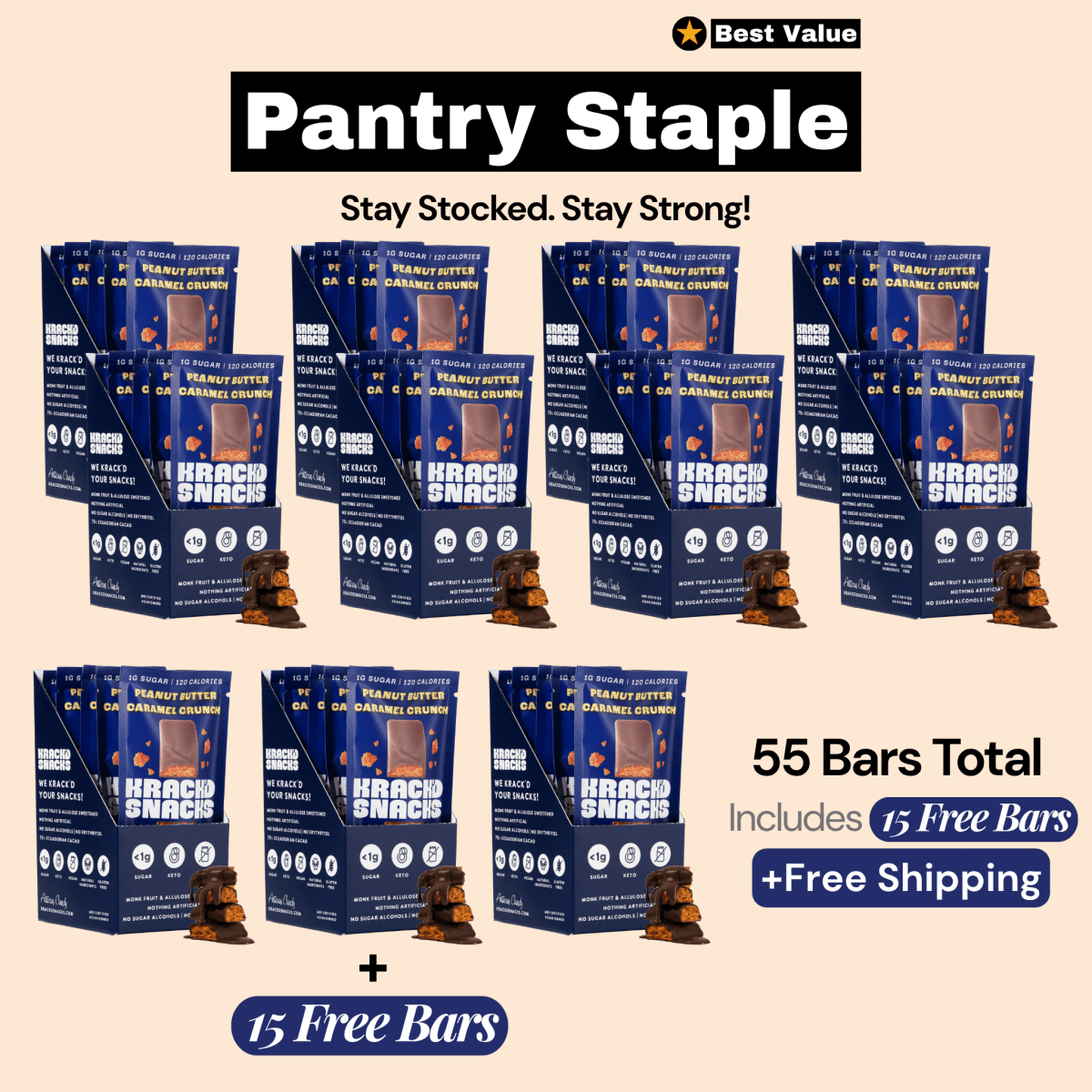 Indulge guilt-free with our handmade, micro-batch, Keto Milk Chocolate Peanut Butter Caramel Crunch! Satisfy your cravings for sweet, salty, nutty, and crunchy with every bite of this delicious candy bar, without feeling sluggish or guilty afterward.