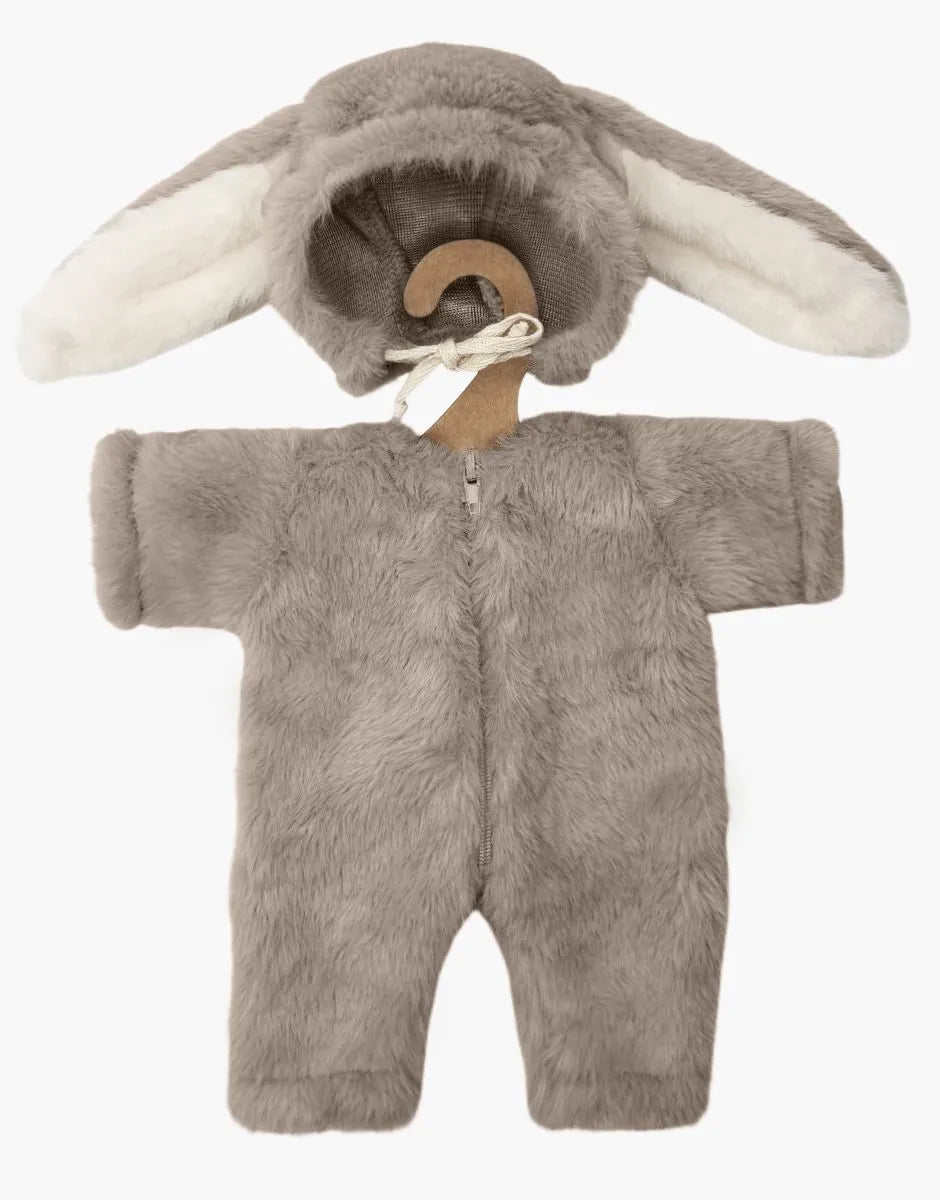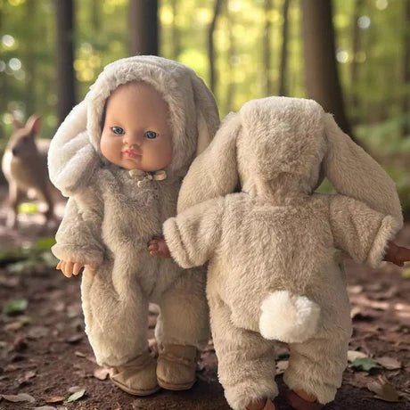 The Bunny Outfit in taupe faux fur from the French company Minikane is the cutest and softest outfit for your baby doll. Fits dolls with a length of 34 cm, like the Minikane, Paola Reina, and Mini Colettos.