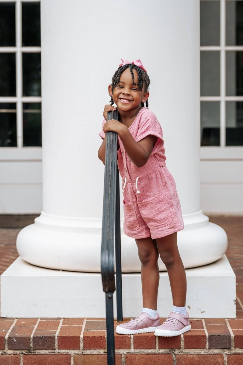 The Play Perfect Low Tops.are designed with a sole that truly sets them apart: zero drop, wide toe box, lightweight, and flexible. Plus, they feature a rubber-capped toe, making them perfect for outdoor adventures like biking, scootering, and beyond, all while supporting natural foot movement and growth.